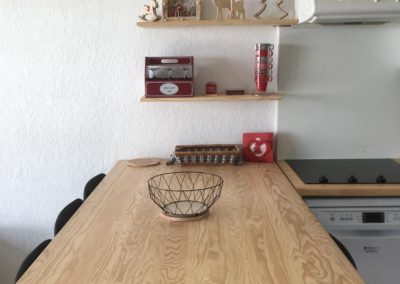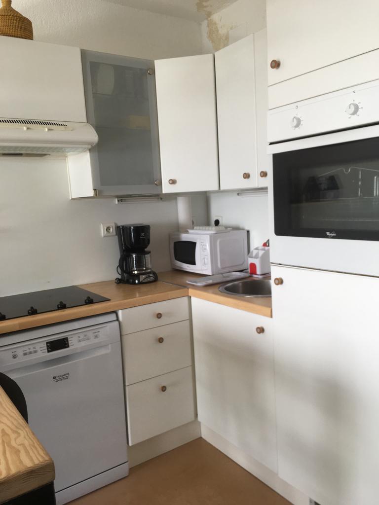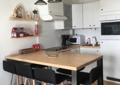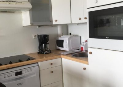 Cuisine tout équipée ( plaque de cuisson, hotte, frigo, lave vaisselle, micro onde, cafetière etc…).