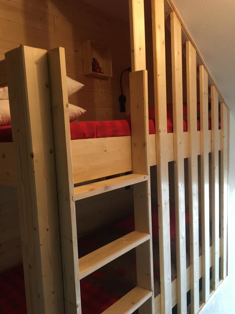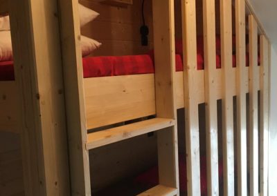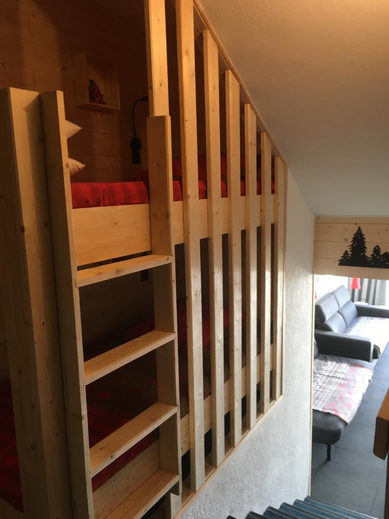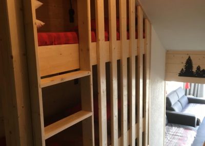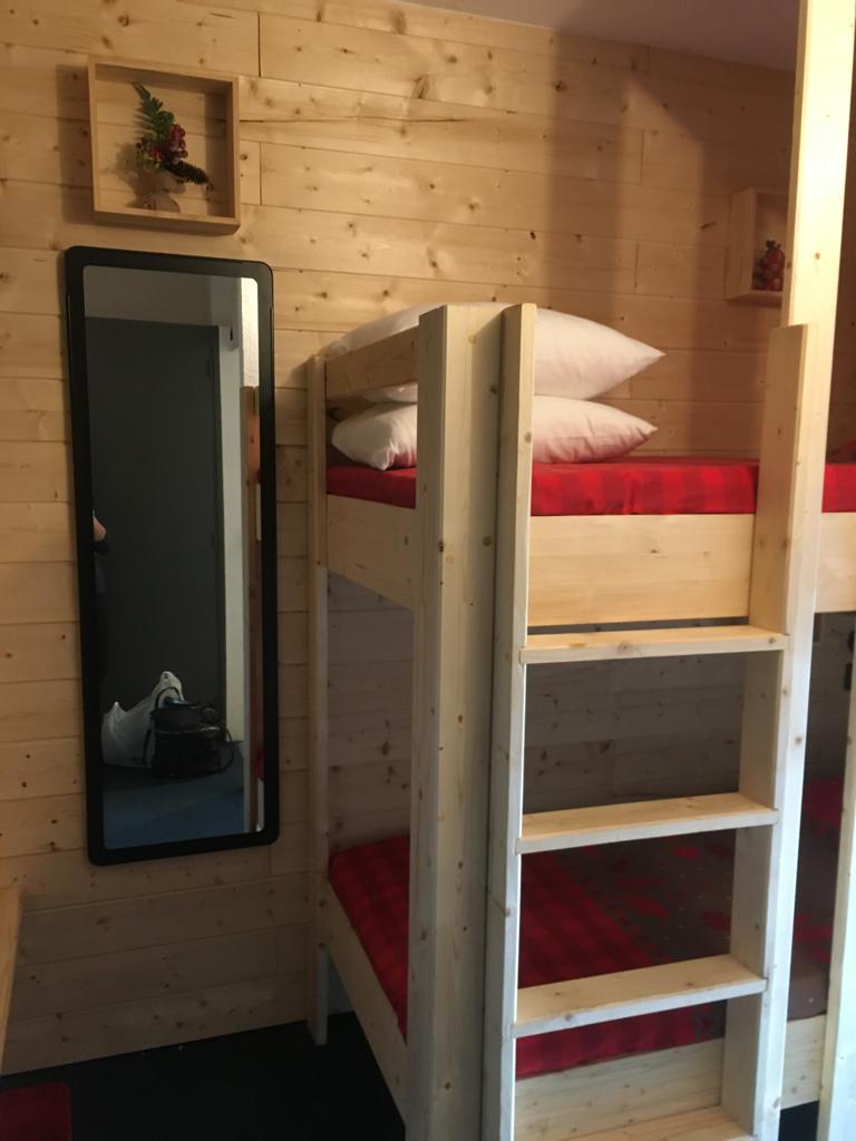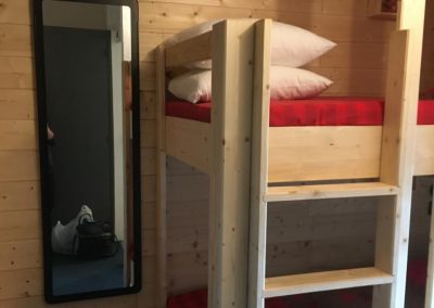 Coin couchage indépendant séparé par une porte avec 2 lits superposés de 90.